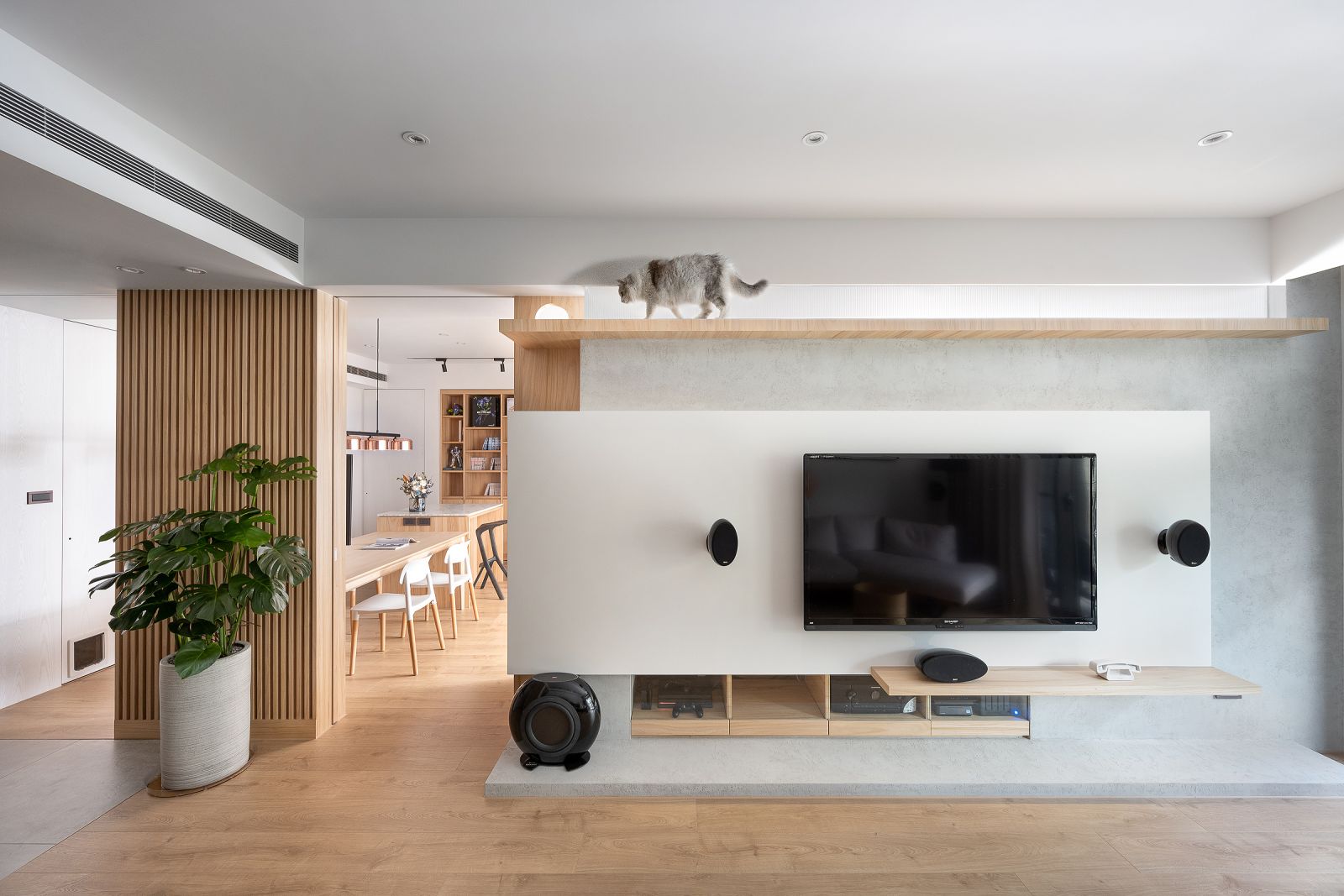 家裡的貓咪都會在開放空間活動,所以特別幫貓咪規劃動線